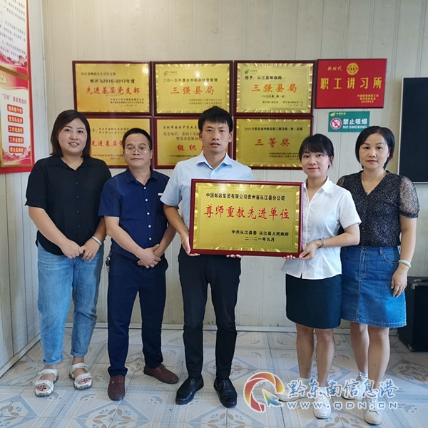 本網(wǎng)訊 9月10日上午,中共從江縣委、從江縣人民政府召開慶祝第37個教師節(jié)暨表揚大會。在表揚大會上,從江縣郵政分公司被授予“2021年從江縣尊師重教先進單位”榮譽稱號。