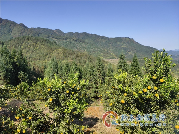 本網訊 從江縣翠里鄉的高文村山坡上,一大片綠色的果樹上掛滿了金燦燦的椪柑。
