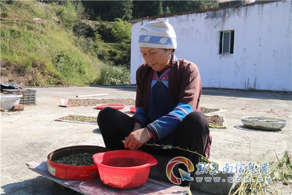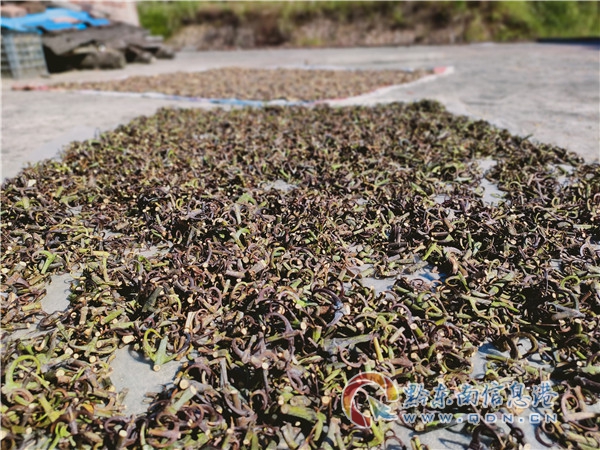 走進農(nóng)戶家中,許多農(nóng)戶屋里屋外堆放成捆的鉤藤,老人、婦女悠閑坐在家中熟練地分剪鉤藤,村民們在自家的房前屋后空地上曬金藤,繪就一幅美麗的豐收畫卷。