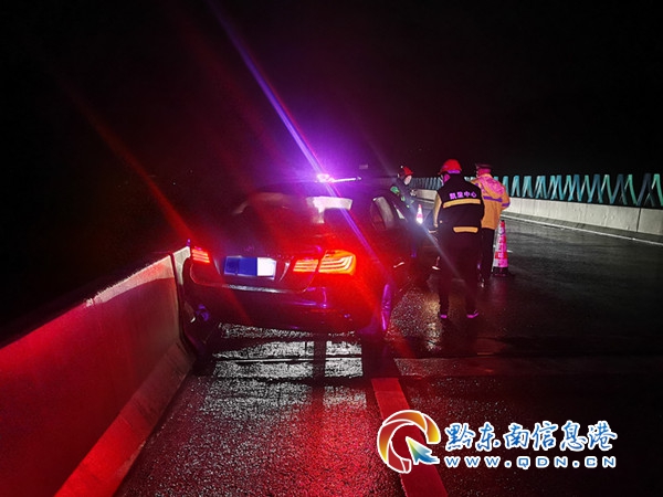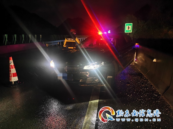 本網訊 3月9日晚上10點左右,S62余冊高速K84+500上行(重安往凱里方向,凱里境內)一輛小轎車因天黑下雨,路面濕滑,操作不當,車輛側滑百余米撞向高速公路橋梁防護墩上。