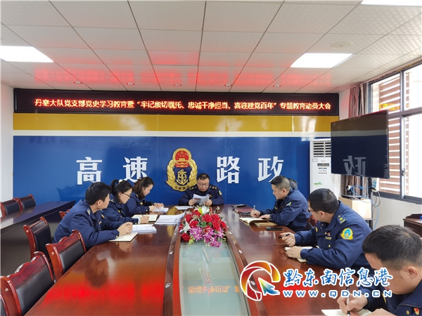 本網訊 2021年3月23日,丹寨路政執法大隊黨支部在會議室召開黨史學習教育暨“牢記殷切囑托、忠誠干凈擔當、喜迎建黨百年”專題教育動員大會,傳達學習了凱里高管處黨史學習教育動員大會精神,并對開展黨史學習教育進行動員部署。黨支部書記劉翔主持會議并作動員講話。