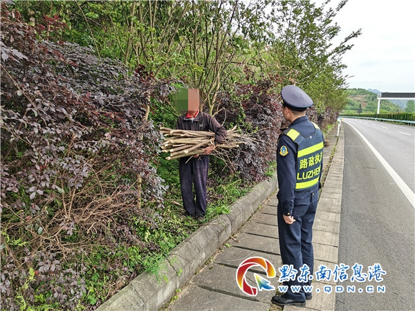 本網訊 2021年4月28日下午16時10分,凱里高速公路管理處丹寨路政執法大隊在S62余冊高速公路開展日常巡查中,發現K142+600下行高速公路右幅有人正在砍伐高速公路綠化帶,路政員將車靠邊停靠后,下車查看,原來是一名年紀較長的老人。經路政員詢問,老人已70多歲,為附近村寨村民,在地里干農活時發現高速公路旁綠化帶內一些雜木已干枯,這些干枯的雜木可以當做家里生火的柴禾,于是便沿著高速公路邊坡下來對干枯的雜木進行砍伐。