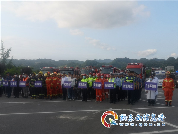 本網訊 為進一步提高全州應急救援隊伍應對高速公路隧道突發事件的處置能力,促進各專業應急救援隊伍能夠快速反應,相互協調,相互配合,經黔東南州人民政府同意,2021年5月20日下午,由黔東南州應急管理局、黔東南州消防救援支隊主辦,丹寨縣人民政府、丹寨縣應急管理局、丹寨縣消防救援大隊承辦,丹寨縣政府有關部門及S62余冊高速凱羊段一路三方等參演單位參加,在S62余冊高速K110+000高寨隧道上行(凱里往丹寨方向,丹寨境內)開展黔東南州2021年高速公路隧道交通事故應急救援實戰演練。凱里高速公路管理處丹寨路政執法大隊參演。