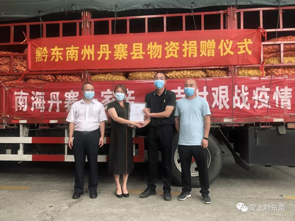 6月14日,正值端午佳節,廣東佛山正處于抗擊疫情關鍵階段,黔東南州丹寨縣高度重視,兩輛滿載著雞蛋、土豆、西瓜、大米共計20噸抗疫物資的大卡車從丹寨縣啟程出發,向著900多公里外的佛山南海區駛去。