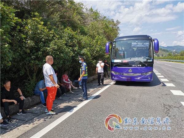 由于高速公路車流量大,車速較快,多呆一秒就多一分危險(xiǎn),為確保司乘人員安全,“一路多方”工作人員與司機(jī)和導(dǎo)游商量后,及時(shí)與丹寨縣客運(yùn)站聯(lián)系,由客運(yùn)站安排車輛前來轉(zhuǎn)運(yùn)滯留乘客,駕駛員及時(shí)聯(lián)系凱里市某汽修廠人員配送皮帶前來更換。