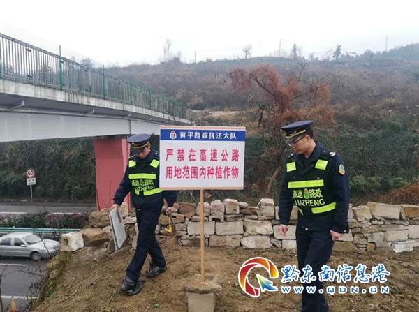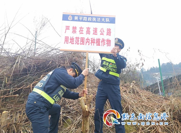 為消除占用高速公路用地種植作物的違法行為,共同維護高速公路干凈整潔的路域環境和安全暢通的行車環境,維護路產保護路權,黃平路政執法大隊多措并舉展開治理行動。一是聯合高速經營單位開展清理行動,對村民在公路用地違法種植的作物進行清除,恢復被破壞的隔離欄柵;二是對沿線村民開展普法宣傳,入戶告知村民禁止在高速公路用地種植作物的法律依據;三是在違法種植點設置警示牌,加強提示、警示效果。