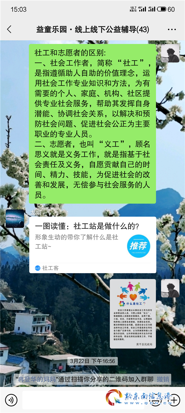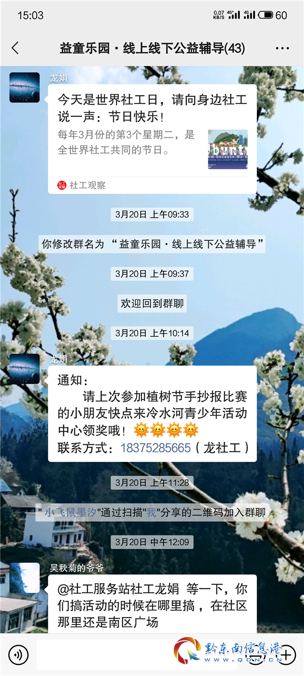 拓展閱讀:本次服務項目是由黔東南州心理健康教育協會作為服務承接方,該協會在州民政、團州委、州婦聯、州教育等部門的關心指導下,與2017年正式加入社會工作服務的專業隊伍,4年來,承接項目2個、先后有18人次加入各類型社工服務團隊,共培養持證社工10人(中級1人、初級9人)。協會在社會工作領域充分發揮自身優勢,整合本地專業社工人才,積極申報并實施管理項目。2020年承接的貴州省社會工作“社工黔行”系列黃平縣冷水河易地扶貧搬遷社區服務項目,該項目是加強我省社會工作人才隊伍、推進社會工作快速發展的重要措施,對完善政府職能、創新社會治理和助力扶貧攻堅、構建和諧貴州具有重要意義。充分發揮本土社會工作人才隊伍的力量,服務地方的同時為當地培養更多的專業社會工作人才。(社工黔行冷水河易地扶貧搬遷小區服務團隊 供稿)