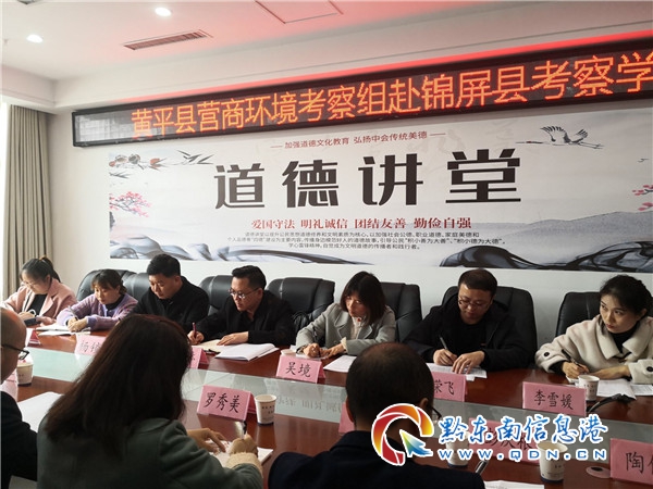 本網訊 為學習借鑒錦屏縣在優化營商環境建設方面的先進經驗,進一步推進我縣優化營商環境大提升工作,實現上檔升位。由縣政府辦副主任廖金缽帶隊,縣營商辦、縣政務中心、縣市場監管局相關人員一行10人組成營商環境考察組,于2021年4月14日赴錦屏縣就開辦企業、政務服務、市場監管等指標進行考察學習。