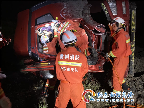 本網訊 8月16日4時57分,黃平縣消防救援大隊接到群眾報警稱:黃平縣新州鎮北門街兩輛大貨車發生追尾側翻,1名駕駛員被困駕駛室,需要消防救援隊伍救助。接到命令后,黃平大隊立即出動1個搶險救援編隊迅速趕赴現場進行處置。