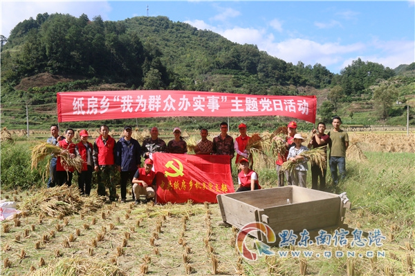 本網訊 金黃遍野,稻谷飄香。9月23日,是我國第四個農民豐收節,黃平縣紙房鄉田間地里處處洋溢著豐收的喜悅,一支由15名機關黨員干部組成的“紅色先鋒隊”在金河村村民向和東戶稻田地里更顯耀眼。