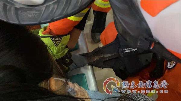 本網訊 10月18日上午10時20分,黃平縣消防救援大隊接到縣政務服務中心求助電話,一名小孩的腳被大廳內休息座椅卡住,無法取出,請求消防部門出動進行救援,救援人員到達現場后,發現小孩左腳卡在休息座椅兩個座位縫隙之間,根據現場情況,消防救援人員用液壓擴張器置于縫隙處,向左右兩側對座位進行擴張,成功將小孩左腳取出。(李紀勝)