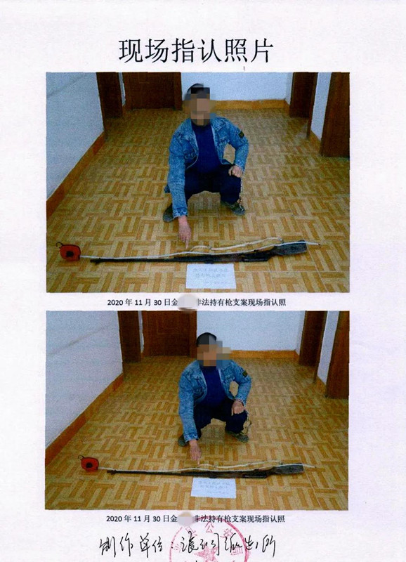 據悉,2010年,被告人金某某明知其父遺留的一支槍是火藥槍,但并未將火藥槍上交公安機關而長期存放于家中。2020年11月間,黃平縣公安局民警到黃平縣浪洞鎮某村金某某家中進行反邪教調查時,意外發現金某某藏匿于其屋內的一支火藥槍,并及時依法扣押。經黔東南苗族侗族自治州公安司法鑒定中心鑒定,被告人金某某非法持有的槍支為一支自制長管火藥槍。