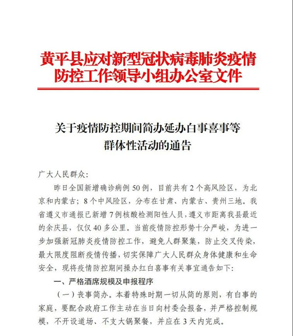 疫情防控期間簡辦延辦白事喜事!黔東南一地發通告
