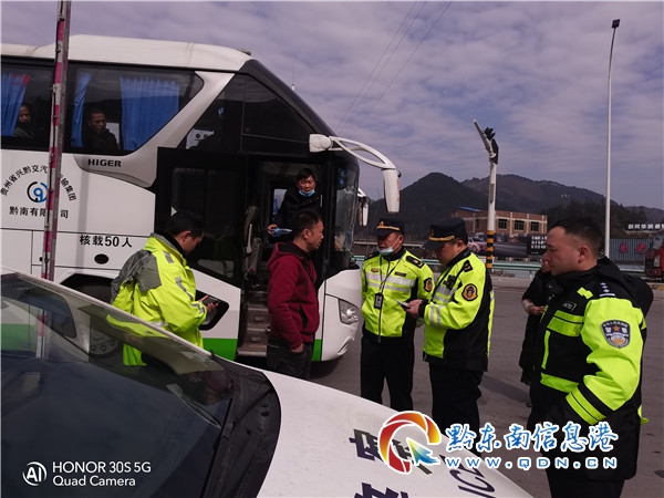 劍河縣交通運輸綜合行政執法人員對長途客運車輛進行檢查