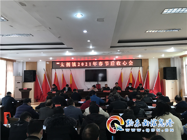 本網訊 轉眼間,春節假期已到,為了讓全體干部職工收攏思想,調整狀態,迅速投入工作中去。2月19日,節后返崗第二天,太擁鎮在鎮大會議室召開2021年春節后收心會,鎮鎮長楊鵬主持會議,鎮黨政班子成員、全體干部職工、各村支書參加了會議。