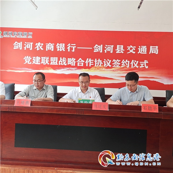 本網(wǎng)訊 為進(jìn)一步充分發(fā)揮基層黨建的核心作用,構(gòu)建黨建聯(lián)盟、雙向促進(jìn),更好發(fā)揮基層黨組織在鄉(xiāng)村振興中的引領(lǐng)作用和金融服務(wù)的積極作用。5月11日上午,劍河縣交通運(yùn)輸局與劍河農(nóng)商銀行在劍河縣交通運(yùn)輸局四樓大會(huì)議室舉行黨建聯(lián)盟戰(zhàn)略合作協(xié)議簽約儀式。