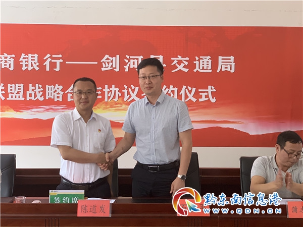 劍河縣交通運(yùn)輸局黨組書記、局長(zhǎng)石勝平,劍河農(nóng)商銀行黨委副書記、副董事長(zhǎng)、行長(zhǎng)陳道發(fā)出席簽約儀式,劍河縣交通運(yùn)輸局局班子成員、局機(jī)關(guān)及局屬單位干部職工、劍河農(nóng)商銀行員工參加活動(dòng)簽約儀式,副局長(zhǎng)蒲志興同志主持會(huì)議。