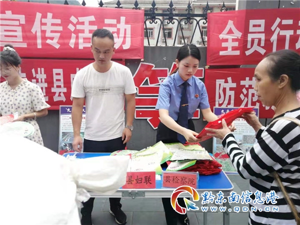 本網訊 為進一步加強人民群眾防毒、拒毒意識,6月21日,按照劍河縣禁毒辦工作部署,劍河縣人民檢察院與縣公安局、縣禁毒辦、縣應急局、縣婦聯和縣團委等多部門在劍河縣城關一小旁邊開展禁毒宣傳活動。