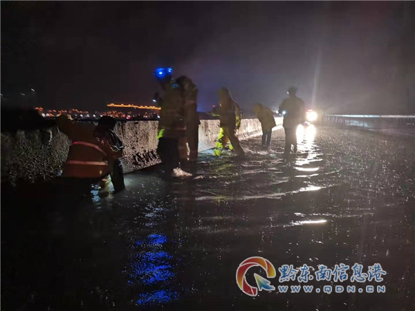 本網訊 9月6日20時43分,黔東南州氣象臺發布暴雨黃色預警信號,黔東南州公安局交警支隊高速四大隊轄區劍河縣革東鎮境內強降雨如期而至,大隊帶班領導劉浪副大隊長隨即派出民警吳明、彭茂盛帶領輔警瞿裕錕、李昌鑫上路加強路面巡控工作,當巡邏至滬昆高速劍河往臺江方向1622公里+200米處時,發現應急車道和行車道嚴重積水,積水深度足有50公分左右,嚴重影響交通安全,民警到現場后就已經有輛小車開進積水區引發故障。不及時對積水路段進行交通管制引導過往車輛安全通行,不及時對積水點進行疏通,按照當時的降雨量也將會把超車道淹沒。