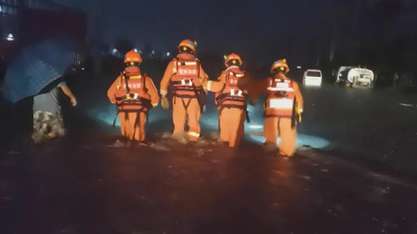 救援人員到達現場后,立即對該路段情況進行偵查。此時,積水已淹至車身。車內有包括一名小孩和老人在內的四名群眾,且暴雨還在持續,情況危急�,F場指揮員立即下達命令,一組人員負責警戒觀察周圍情況,一組負責救援被困群眾,經過近十分鐘救援,被困群眾被成功救出轉移到安全地帶。
