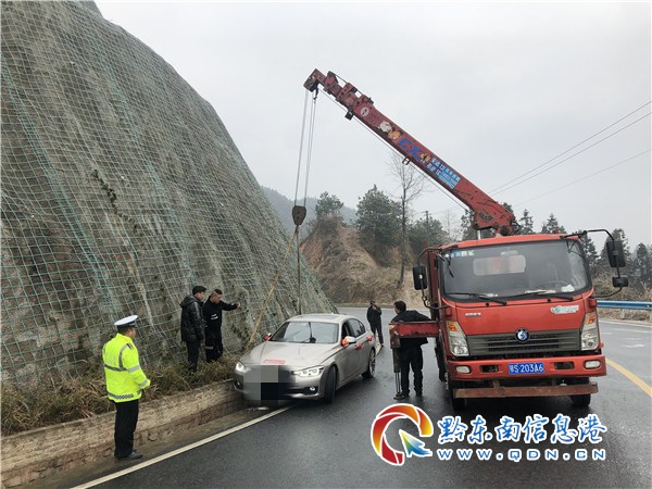 242國道錦屏往天柱方向,1月6日夜間,2輛前往福泉方向婚車,因路面凝凍側滑掉下邊溝,造成整個迎親車隊,大量迎親人員被困高登坡,車輛被困人員多次聯系救援車輛。但救援人員因怕道路凝凍,造成二次事故,均不愿前往救援。了解情況后,交警大隊經多方協調,成功組織到社會救助力量前往事故現場施救,經過1個多小時的救助,兩輛車輛被救出,同時交警根據全州路口信息指引車隊前往目的地路線,迎親駕駛人對執勤交警及救援人員萬分感謝,洋溢著幸福的微笑帶領婚車車隊從新出發。