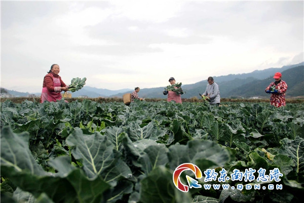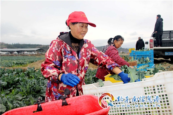 “大家一定要按照要求采摘,西藍花的花球在12至15公分之間,根莖要留三指長,留三片菜葉就可以了,裝箱的時候預留空間不要堆滿......”貴州山地美農(nóng)農(nóng)業(yè)有限公司副總范芳焯一邊指導農(nóng)婦采摘一邊向筆者介紹道:“我們已經(jīng)采摘3天了,今年冬天雨水多,我們要趁天氣好,在年前完成第一批西藍花的采收上市”。