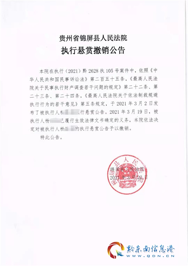 本網訊 “法官,我的銀行卡有錢進來了,請幫我把案件處理下......”這是被執行人楊某主動電話聯系錦屏法院執行法官所告知的信息。