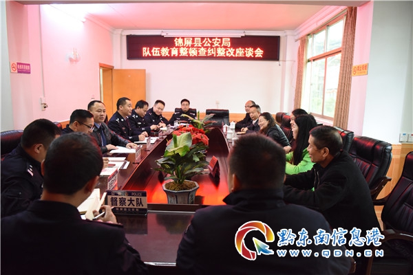 錦屏縣公安局召開隊伍教育整頓征求意見座談會,通過邀請社區負責人、企業代表、案件當事人及“兩代表一委員”參加座談會,廣泛征求并聽取社會各界對錦屏公安隊伍教育整頓工作的意見和建議,了解群眾所思、所想、所盼,做到教育整頓工作讓群眾參與、受群眾監督、由群眾評判,及時研究解決群眾合力訴求。與會代表對進一步加強基層隊伍建設、提升民警業務能力和執法水平、公安英模典型宣傳、掃黑除惡、背街小巷巡邏防范、交通管理優化、吸毒人員管理等方面提出了客觀中肯的14條意見和建議,并立即制定了整改清單,逐項抓好落實。