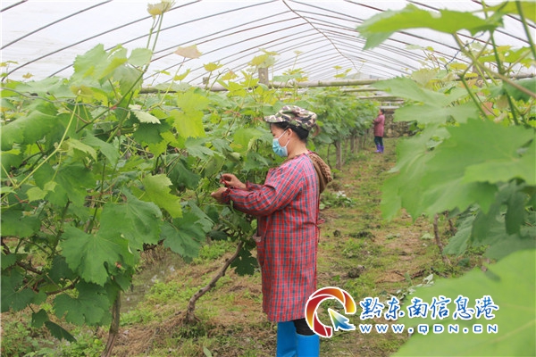“我來這里上班已經有3個年頭,每年我都要到葡萄園里做工3個月左右,每月的收入差不多兩千,對于我們在家的婦女來說,就近就業不僅增收,還能照顧家里,一舉兩得。”花橋村太平沖組村民曹金鳳一邊抹芽,一邊笑著說道。