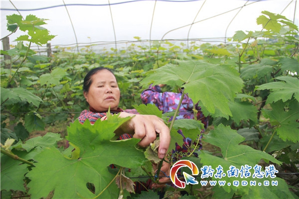 本網訊 眼下,正是葡萄生長的黃金期。4月27日,在貴州省錦屏縣銅鼓鎮花橋村忠智水果莊園葡萄種植基地,一株株葡萄萌芽展葉,枝蔓伸長抽穗,花芽茂盛,果農和工人們在葡萄藤架之間來回穿梭,忙著抹芽、修枝、疏花疏果,一派忙碌景象。
