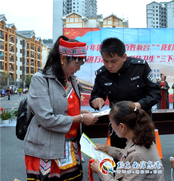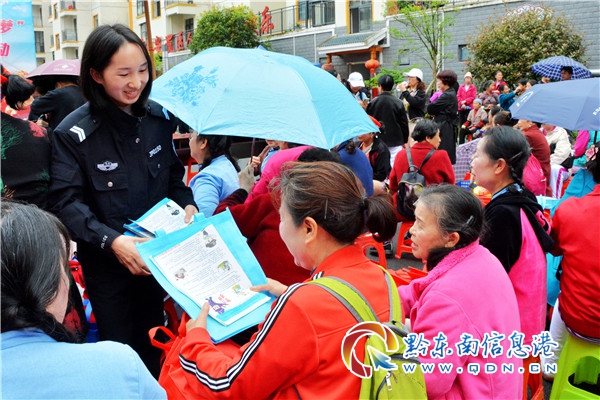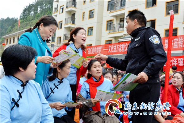 為豐富易地搬遷群眾精神文化生活,提高群眾的綜合素質,讓他們搬得進來,住得安心。在五一來臨之際,錦屏縣公安局組織禁毒、刑偵、交警等部門積極參加該縣宣傳部組織的“文化進萬家暨文化科技衛生”三下鄉活動。