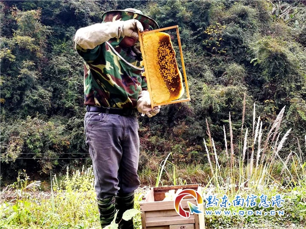 驟雨初歇,啟蒙鎮臘洞村熱鬧了起來,院落內隨處可見蜂箱,周邊回響著蜜蜂的“嗡嗡”聲,這是副主任龍必科的家,他說這些蜜蜂是他們致富的寶貝,養蜂是村里探索出來的致富之路。而說到養蜂,龍必科最要感謝的就是臘洞村原駐村干部王世濤。