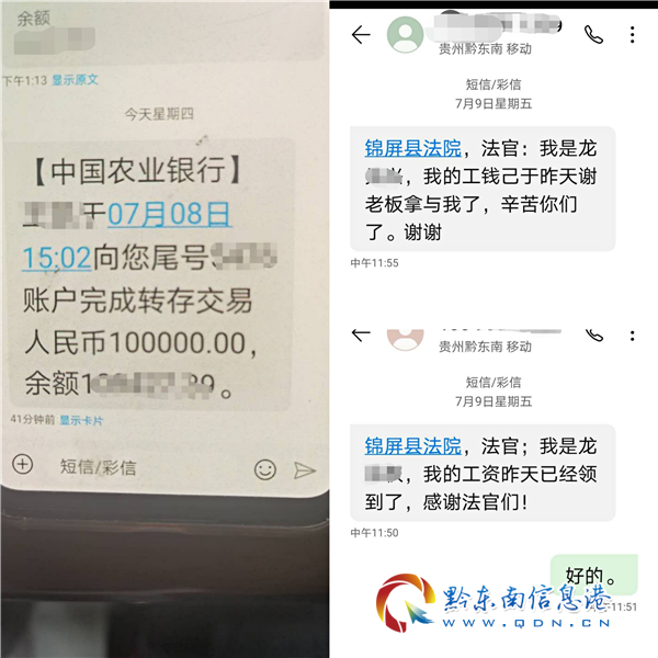 本網訊 近日,錦屏縣人民法院多元調解室出現這樣一幕,幾名農民工一臉喜悅的感謝道:“法官,太感謝你們的幫助,貴院高效便民的司法服務在未立案未交一分案件受理費的情況下,老板拖欠我們多年的10萬元勞務工資已經到賬了”。
