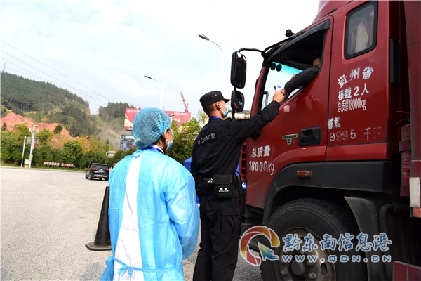 本網訊  疫情就是警情,自10月23日以來,貴州省錦屏縣公安局嚴格按照省、州、縣疫情防控部署工作要求,啟動疫情防控應急響應機制,組織警力全力投入到錦屏縣豪賴高速卡點、省際烏坡執勤卡點、汽車站、農貿市場等地協助開展疫情防控工作。圖為2021年10月27日,錦屏縣公安局民警開展疫情防控執勤場景。(劉光榮)
