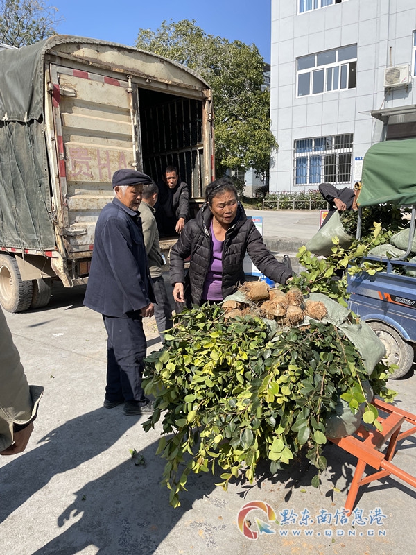 12月6日上午,晴空萬里,來自該鎮各村的油茶種植戶們陸續開著農用三輪車或小貨車陸續趕到鎮政府操場上,有說有笑的等待著油茶苗的發放。