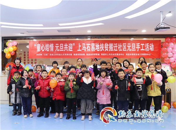 為了在易地扶貧搬遷社區弘揚傳統節日文化、傳承民族手工、營造節日氣氛。2020年12月31日,在節日到來之際,凱里市彩虹社會工作服務中心在凱里市上馬石社區四點半學校開展了一場迎元旦手工制作活動,參與本次活動的社工及兒童共計30人。