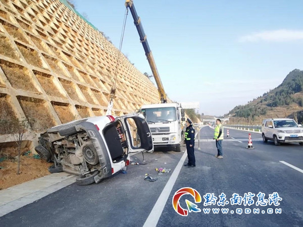 當(dāng)天15時(shí)50分,凱里高速公路管理處凱里路政執(zhí)法大隊(duì)路政員接到報(bào)警稱:在S07凱里繞城高速K18+200下行(凱里至麻江方向,凱里市境內(nèi))有一輛越野車發(fā)生事故,通過(guò)視頻監(jiān)控顯示車輛仰翻在應(yīng)急停車道上,請(qǐng)前往現(xiàn)場(chǎng)處置。警情就是命令,路政員接報(bào)警后,火速出警,同時(shí)通知轄區(qū)高速交警、高速救援部門、萬(wàn)潮養(yǎng)護(hù)工區(qū)前往現(xiàn)場(chǎng)共同處置。