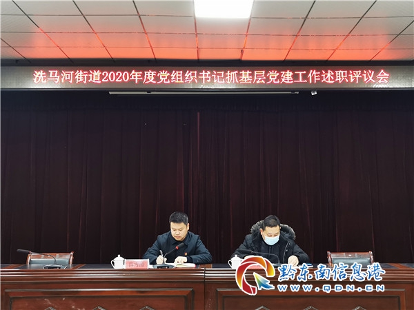 本網訊 1月28日上午,洗馬河街道召開2020年度黨組織書記抓黨建工作述職評議會議。會議由街道黨委書記肖方清主持,街道黨委班子成員、各社區黨工委書記、黨(總)支部書記、各科室負責人,部分兩代表一委員及群眾代表等共40余人參加會議,市委組織部指導組到會指導。