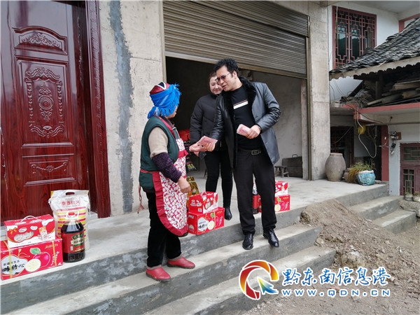艾則孜·麥麥提敏到勞動橋村共走訪三戶貧困戶,每戶送去一袋米,一桶油,一箱水果,一提牛奶和若干人民幣。“我自己也是貧困出生,從新疆過來,在凱里市落腳生根。我喜歡這個城市,也想為城市作出自己的一點點貢獻”艾則孜·麥麥提敏說道。