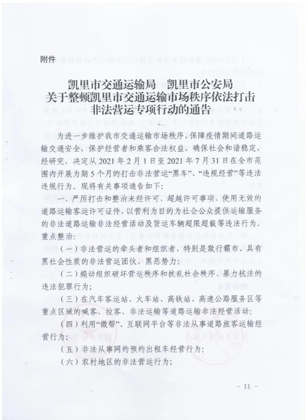 關于整頓凱里市交通運輸市場秩序