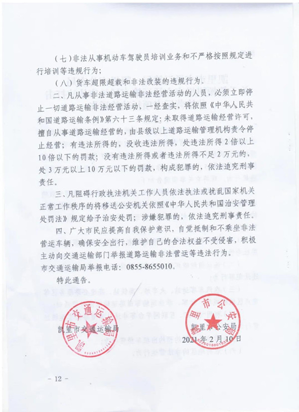 市交通運輸局舉報電話:0855-8655010。