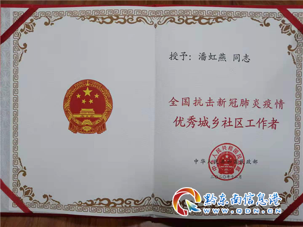 2021年2月3日,當收到“全國抗擊新冠肺炎疫情先進城鄉工作者”證書時潘虹燕激動無比,回想疫情防控那段關鍵時期,潘虹燕說:“我當時擔心過,也害怕過,擔心排查信息不全面給群眾帶來不必要的麻煩,害怕漏排一些細小角落,不能第一時間排查隱患,但是,無論怎么樣,我作為一名共產黨員,都要克服所有的困難,堅守自己的崗位!我慶幸,能參與這場戰役;我慶幸,我能有機會做一名“逆行者;我慶幸,我能用實際行動去踐行一名中國共產黨員的責任和義務!”。當前,疫情防控形勢還不能掉以輕心,我們會繼續站好崗位,抓好基層疫情防控各項工作,用行動守護人民群眾生命健康和生命安全。