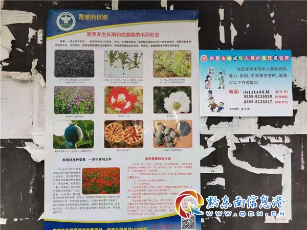 三是加強宣傳動員,強化氛圍營造。為擴大禁種鏟毒踏查的宣傳面和知曉率,營造全民參與禁種鏟毒踏查濃厚氛圍,萬潮鎮充分利用開展疫情防控、返鄉人員返鄉等為契機,組織村組干部、農村黨員、村民代表、護林員群體,通過張貼公告和罌粟識別掛畫、集鎮宣傳、懸掛橫幅、發放宣傳手冊等方式向廣大人民群眾宣傳毒品原植物等相關知識,宣傳、介紹種毒的危害和政府禁種鏟毒的決心和信心,大力宣傳《中華人民共和國禁毒法》《貴州省禁毒條例》等相關法律法規,切實增強廣大群眾的法制觀念和禁種意識,充分發動人民群眾積極參與檢舉揭發非法種植毒品原植物的違法活動,增強了廣大村民的禁毒意識,使“種毒違法、種毒必鏟、種毒必究”的法制觀念深入人心,為全面深入推進禁毒“大掃除”專項行動奠定了堅實的基礎。截止目前,共發放各種禁毒宣傳資料5000余份,懸掛橫幅18條,禁毒宣傳品2000余份。