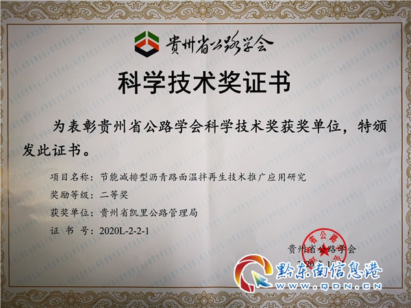 “貴州省公路學會科學技術獎”由貴州省科學技術廳于2008年11月24日批準設立,是面向全省公路交通行業的權威科技獎項。( 繆樹民)
