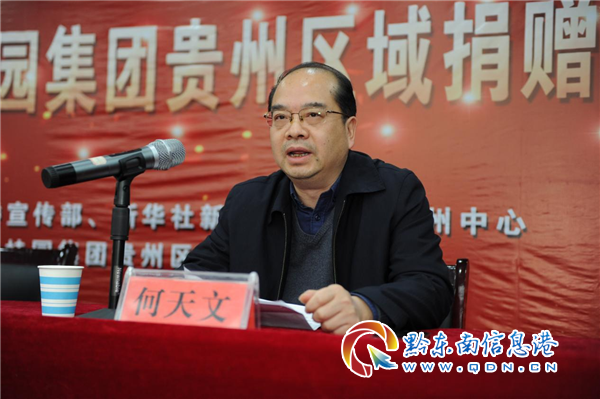 新華社貴州分社副社長何天文在致辭中表示,鄉村振興是新時代背景下新型城鎮化的重要戰略,新華社貴州分社一直響應黨的號召,集結民族企業的社會力量,發揮自身優勢,推動鄉村振興,促進農業高質高效、鄉村宜居宜業、農民富裕富足。今年是新華社貴州分社與碧桂園集團貴州區域攜手公益的第4年,希望通過本次捐贈活動深入優化媒企合作模式,更好助力凱里市鄉村振興工作。