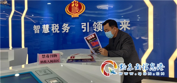 本網(wǎng)訊 4月,為全國(guó)稅務(wù)系統(tǒng)開(kāi)展稅法宣傳工作月,凱里市稅務(wù)局抓住這有利時(shí)機(jī),在各征收大廳加設(shè)了“禁毒刊物”知識(shí)納稅人閱讀區(qū),利用大廳顯示屏不定期播發(fā)禁毒圖片,極力營(yíng)建禁毒知識(shí)隨處閱的有力點(diǎn)。