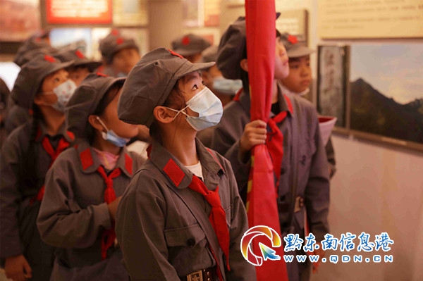 啟動儀式后,學生們首先去到凱里市黨史陳列館進行百年黨史教育。黔東南州是著名的革命老區,凱里黨史陳列館是貴州省首家綜合性的黨史陳列館,也是凱里市及黔東南州重要的紅色文化教育基地和愛國主義教育基地。700余名師生有序進入館內,在講解員的引導下,先后參觀了主題展廳內的“艱苦求索”“艱辛探索”“奮力拼搏”三個展區,現場回顧了中國共產黨領導進行革命、建設、改革的奮斗史,了解了改革開放以來凱里的三線建設,同學們紛紛在研學手冊上認真記錄下革命先烈們的名字和相關事跡。