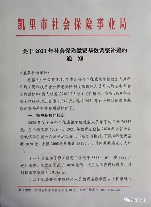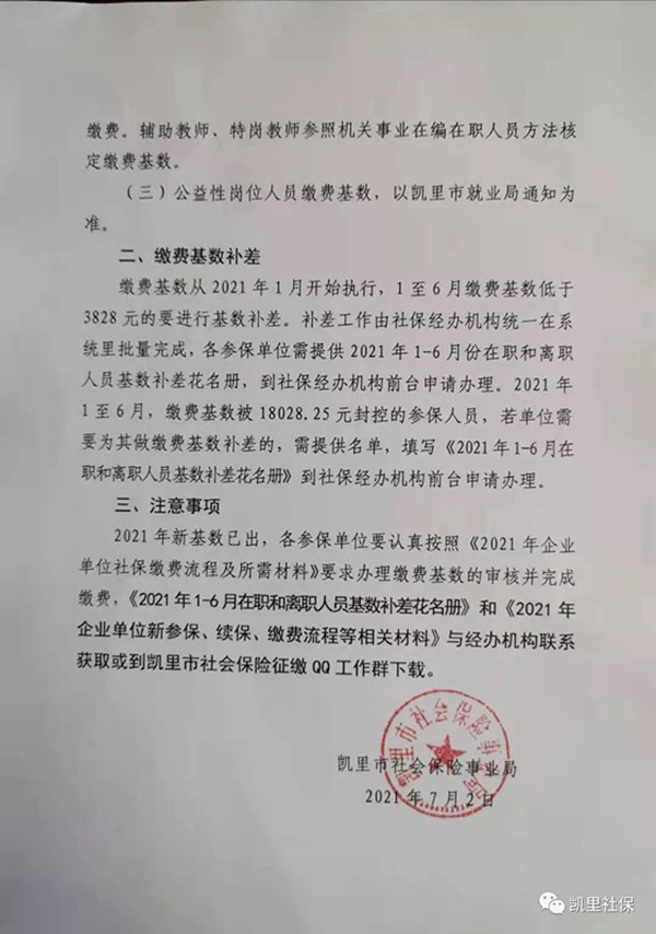 @凱里人快看!關于2021年社會保險繳費基數調整補差的通知