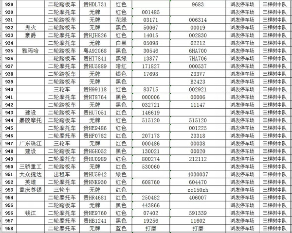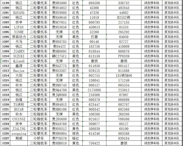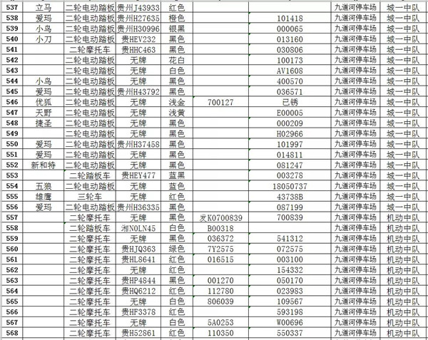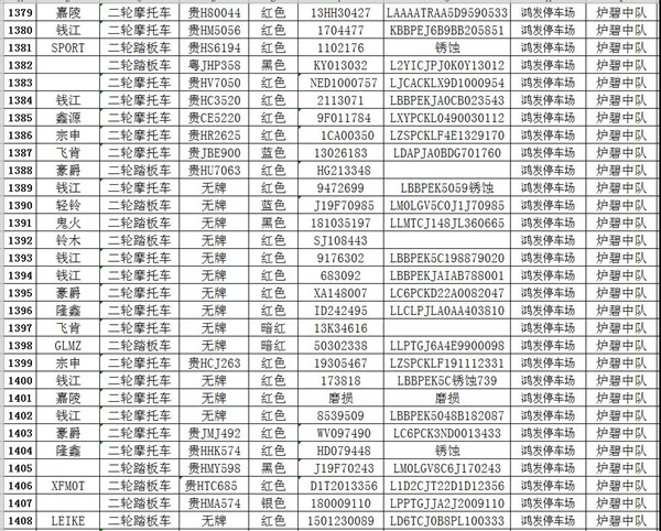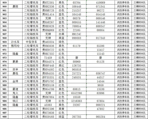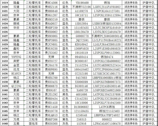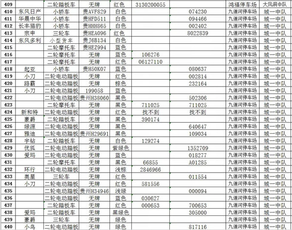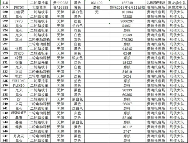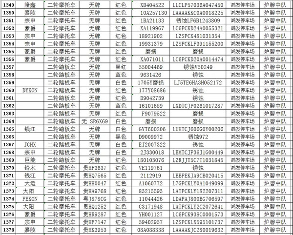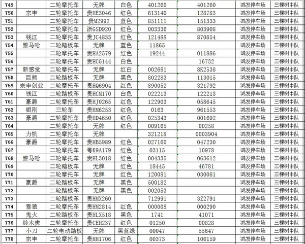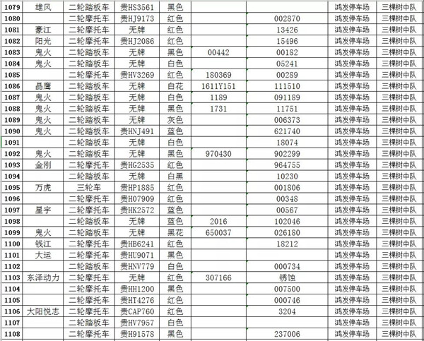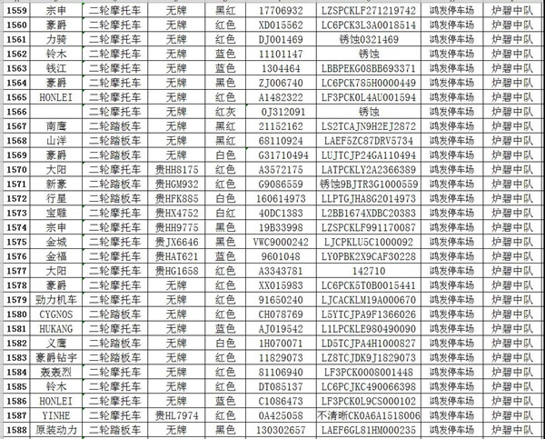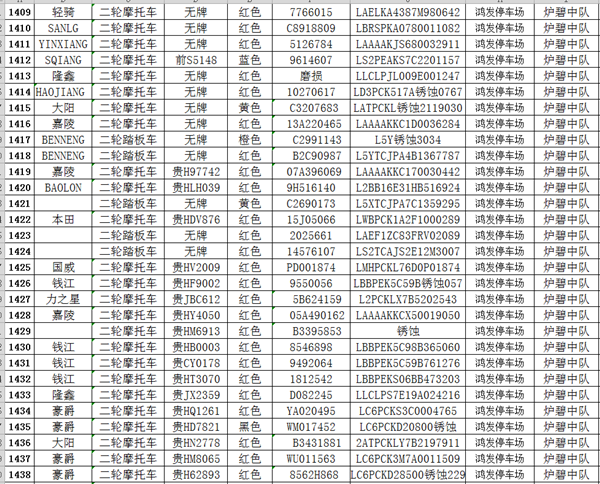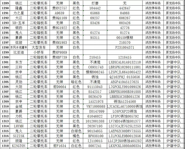 凱里市公安局交通警察大隊扣留車輛報廢清單