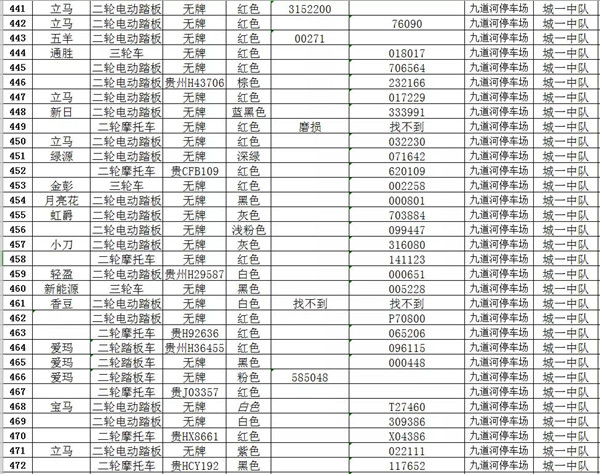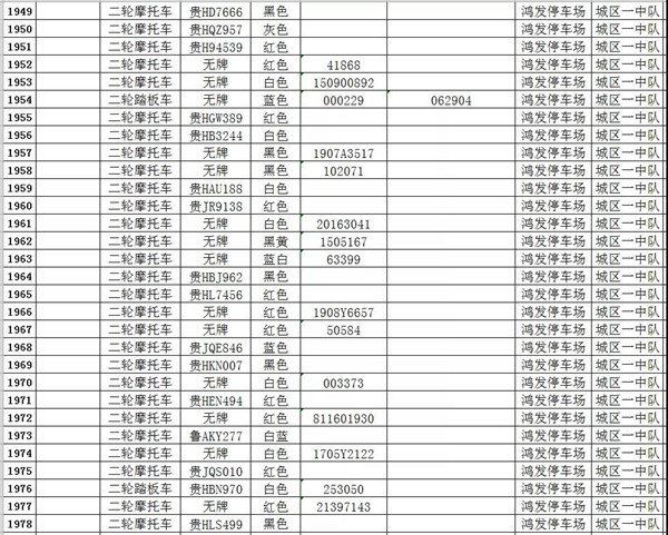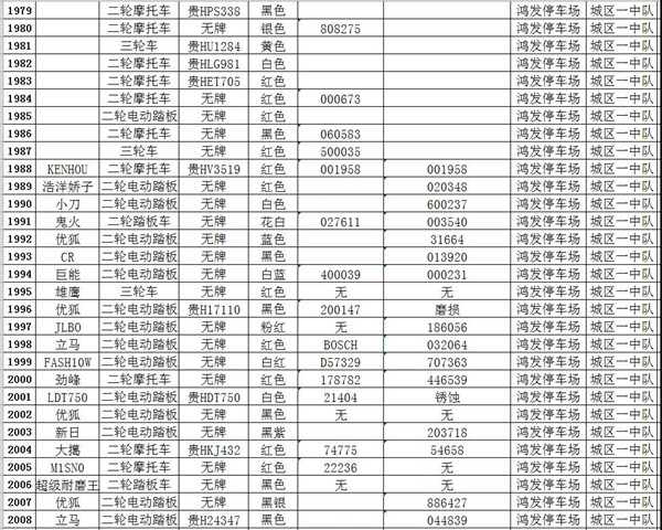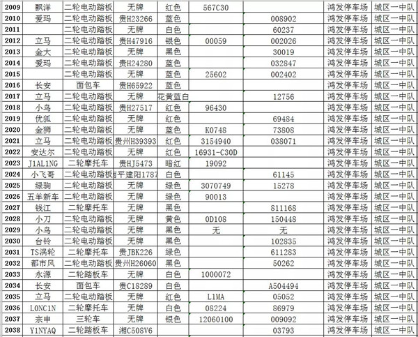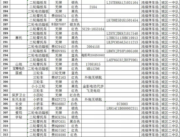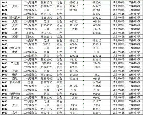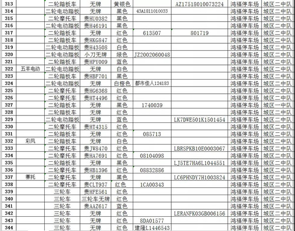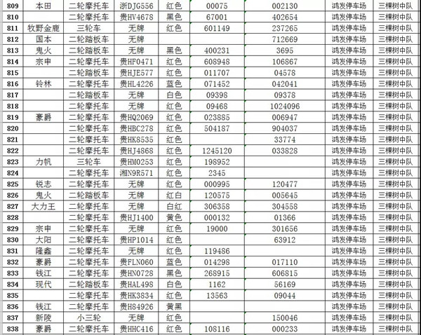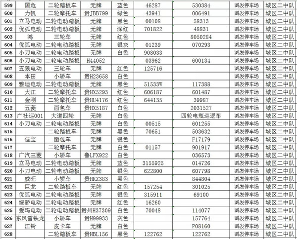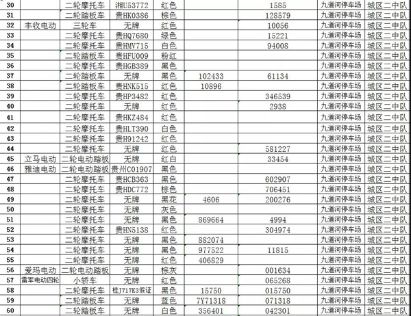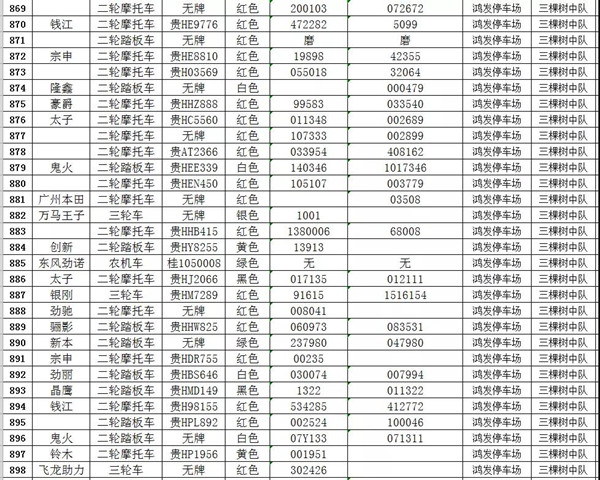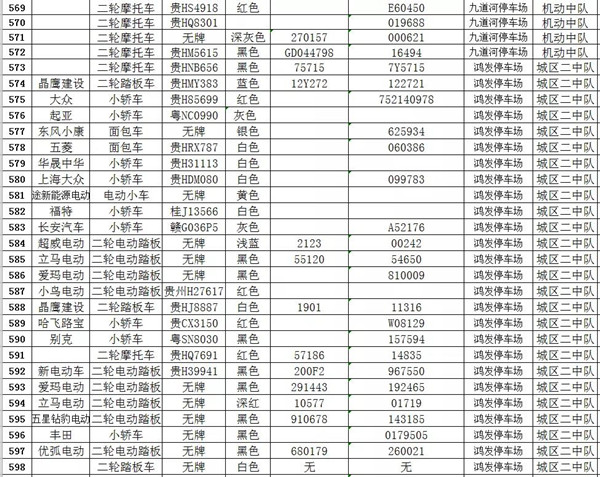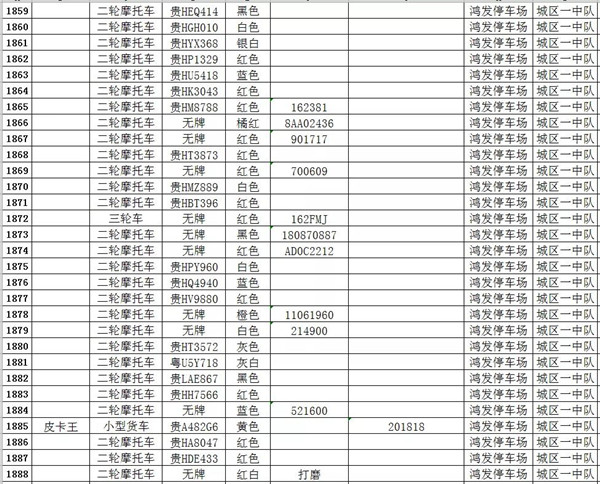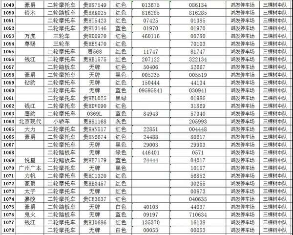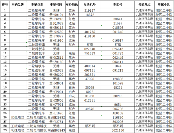 凱里市公安局交通警察大隊扣留車輛報廢清單